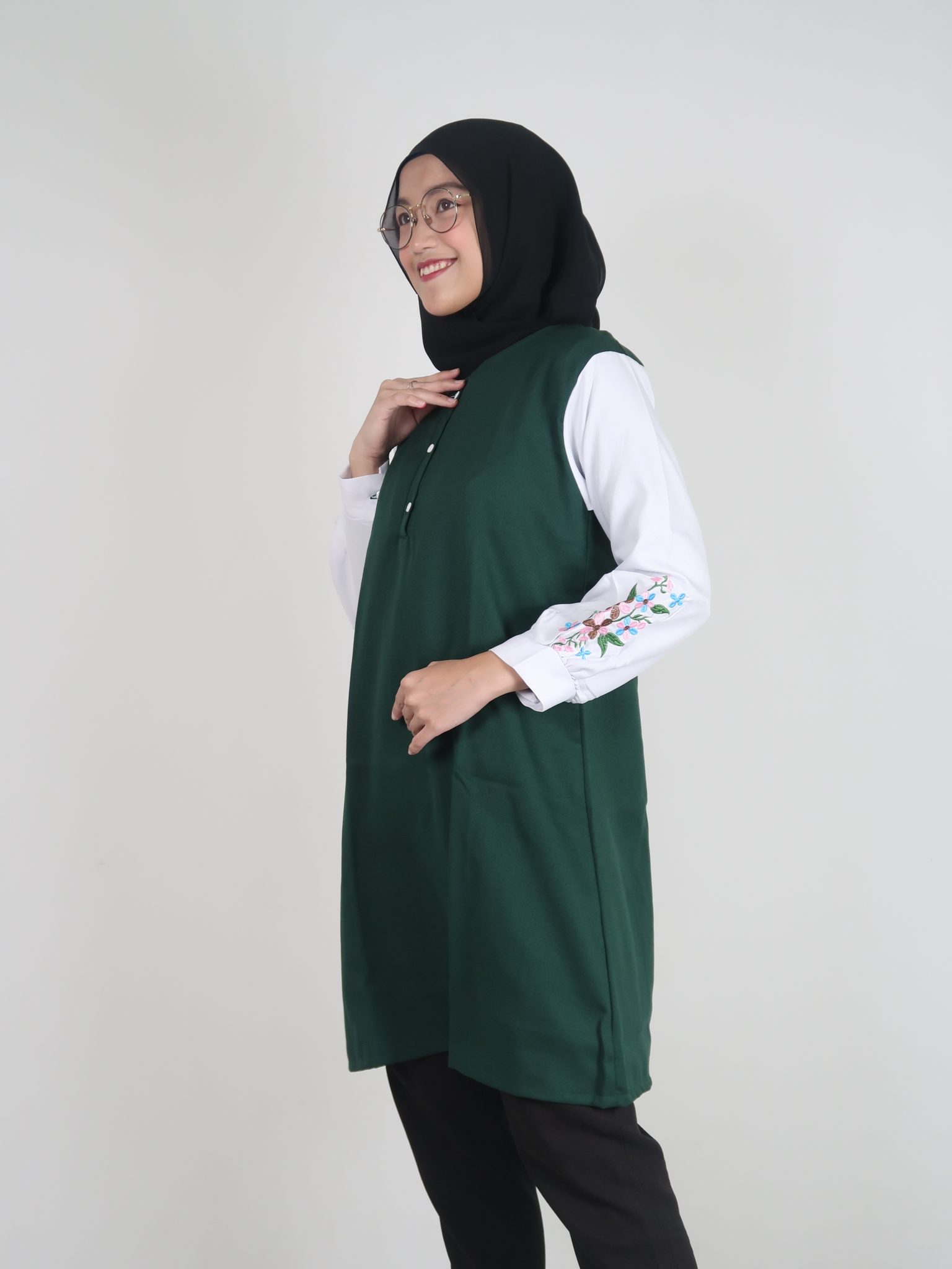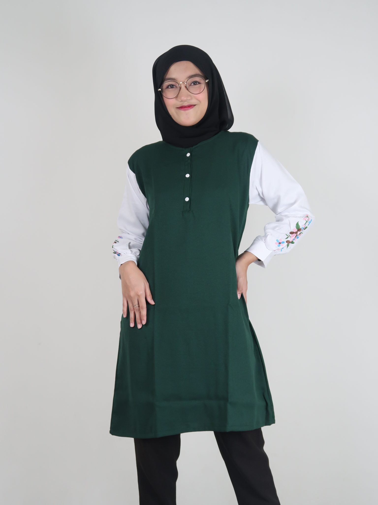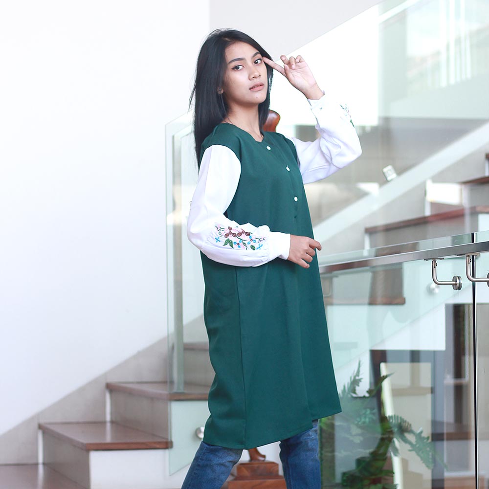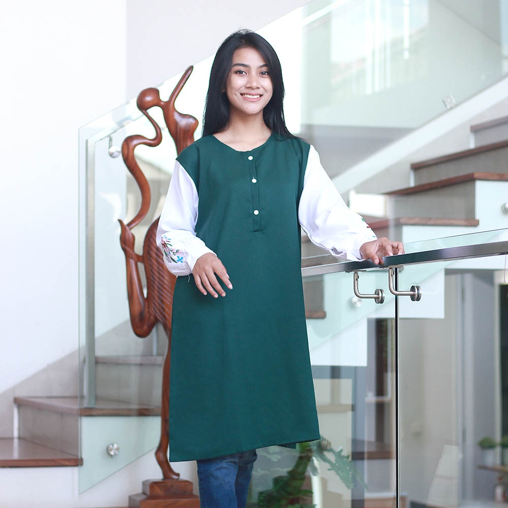 Tunik Wanita Muslim Hijau Kom Moscrepe Inficlo INF 637 adalah produk fashion handmade terbaik 100 persen asli produk Indonesia, asal Bandung kota paris van java.